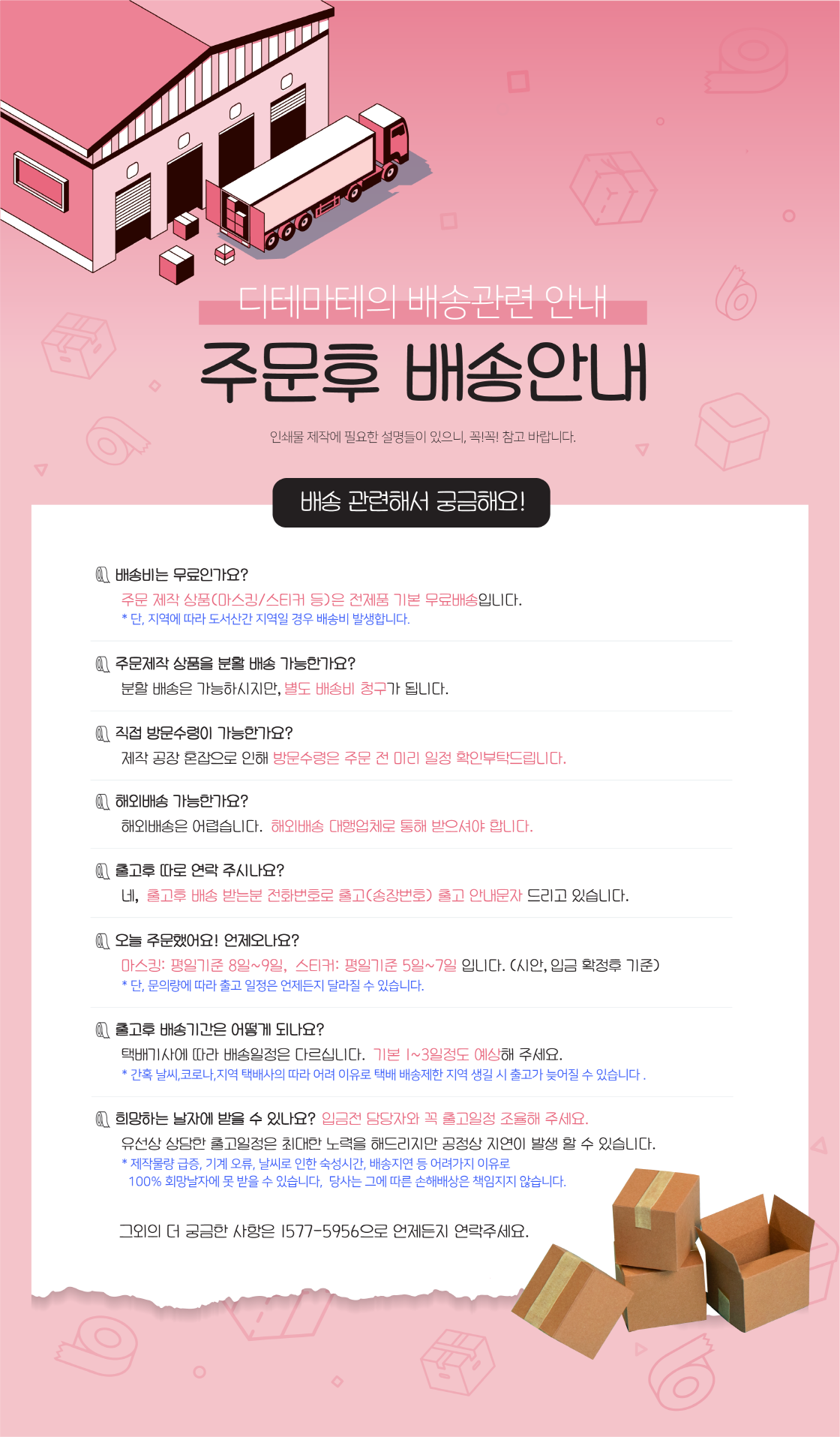 | 교환배송비 | 편도 3,500원 왕복 7,000원 ※상품별 배송비 상이 ※제주, 도서산간 지역에 따라 배송비 상이 |